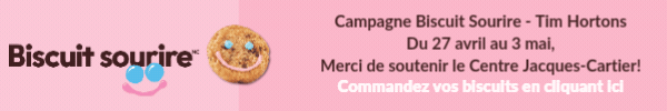 đȘC’est parti ! La campagne Biscuit Sourire, en partenariat avec Tim Hortons, se tiendra du 27 avril au 3 mai. đȘ
