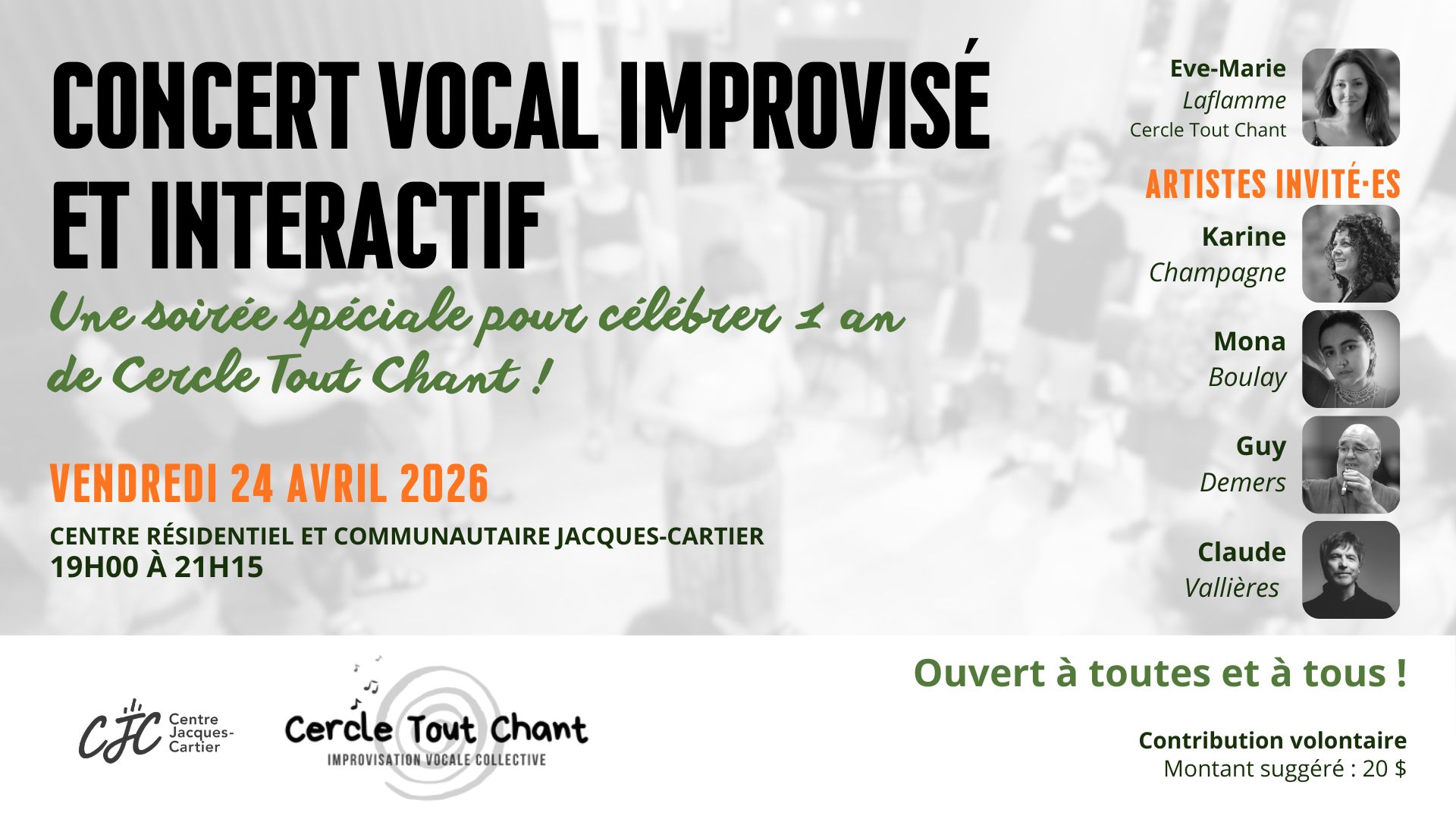 CONCERT VOCAL IMPROVISÉ ET INTERACTIF – 1 an de Cercle Tout Chant !