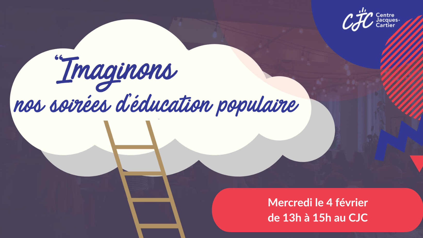 Nous vous invitons à venir rêver et imaginer les soirées d’éducation avec nous le mercredi 4 février de 13h à 15h.