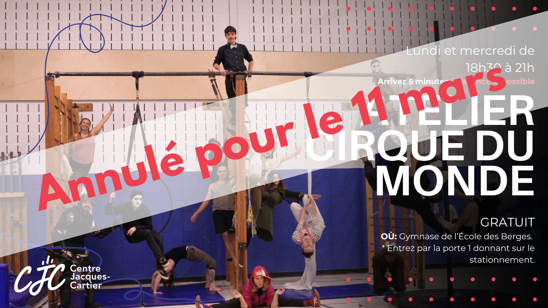 Flash info L'atelier de cirque du monde est annulé pour ce soir! Détails : https://www.facebook.com/circassien.dumonde/posts/pfbid0M2k8VYVqtiFEUpVXfh5VqTps7HbDGtuXmiUMYmnYpAvnuTZQrPtSbfkMtnHxb8Agl... Read more » |