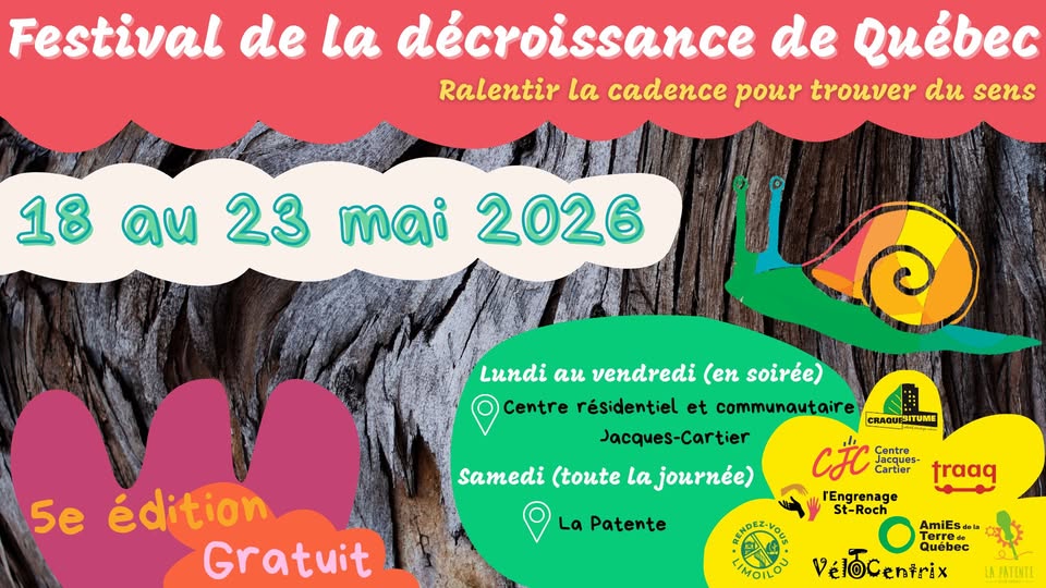 Cette activité se tient au CJC dans le cadre Festival de la décroissance de Québec. ⏳19h... Read more » |